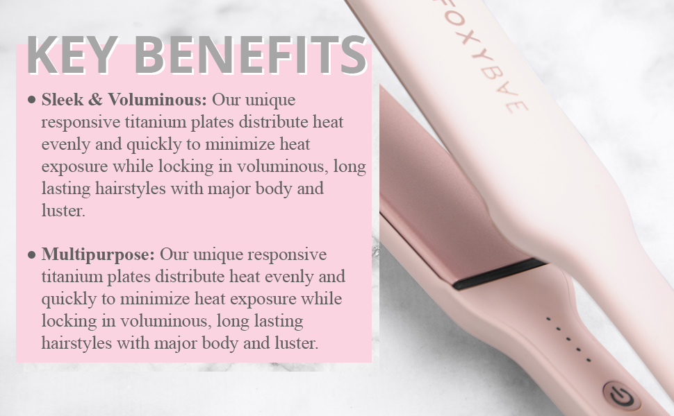 Amazon Com Foxybae Titanium Flat Iron Hair Straightener Quick Heating Ionic Digital Temperature Control Rose Gold Tres Sleek Hair Straightener Iron With Auto Shut Off 360 Swivel Cord